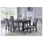 Inspired by the sheer simplicity and weatherworn beauty of primitive furniture, Leviton Antique Black Finished Wood Dining Set brings a relaxed sense of style into your space. It provides an ample amount of seating, making it a versatile option that can accommodate both your family and guests. Enjoy cozy, intimate dinners and gatherings around the beautiful dining table. The Leviton Dining Chairs offers a simply elegant design and is upholstered in soft solid color fabric with a solid wood frame, perfectly accented with button tufting.